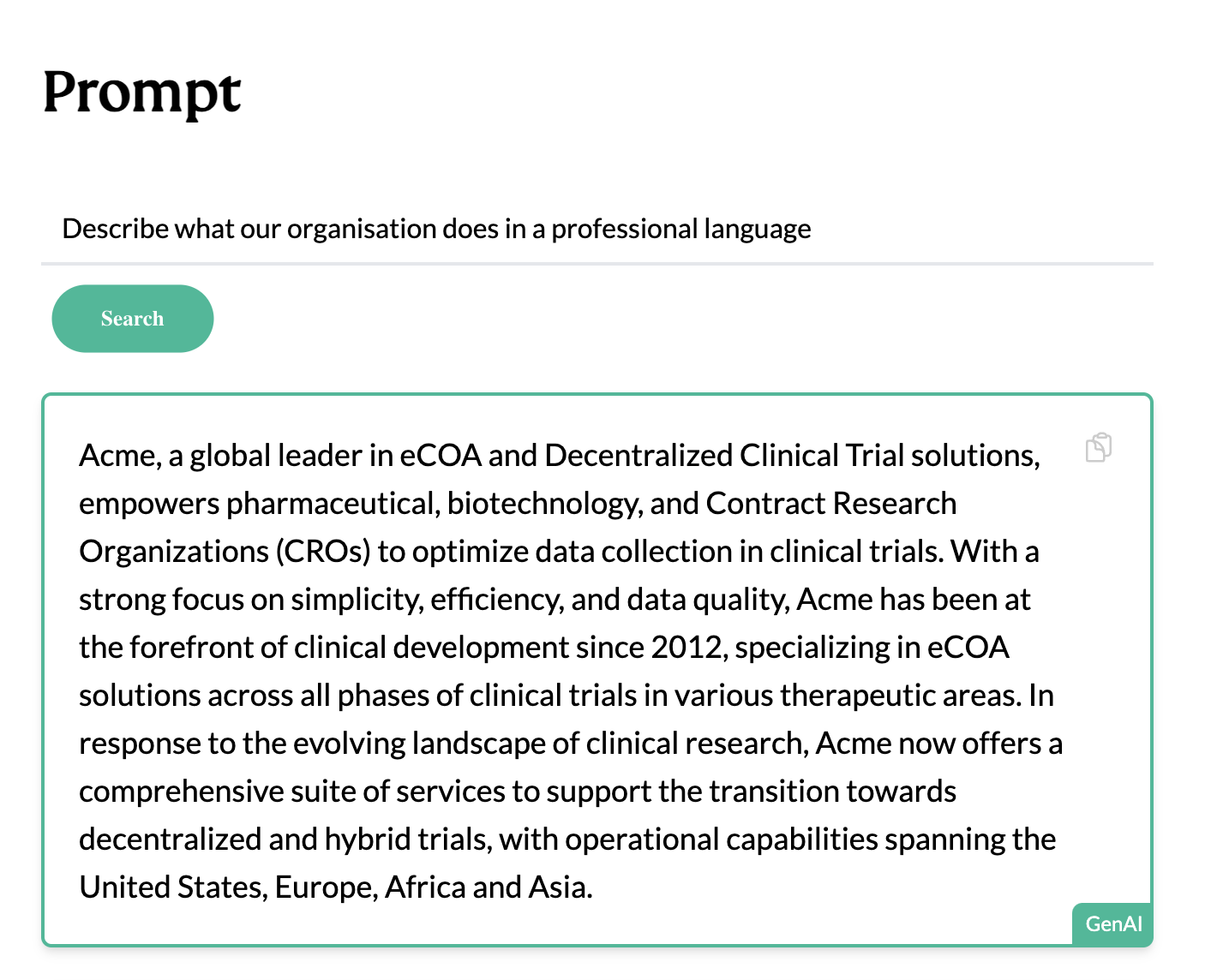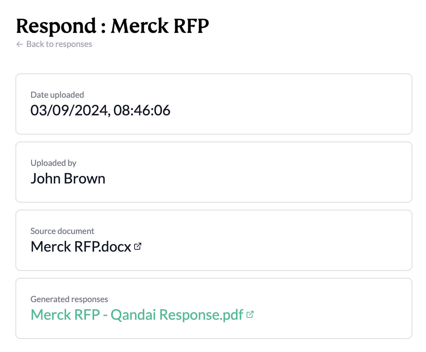 From the very first document you upload, Qandai is ready to start responding to your questions. Whether it's directly in the search module, which allows you to ask individual questions, or by requesting Qandai to compose a response to an RFP, RFI or a grant proposal, Qandai will utilise the knowledge it gathered from your documents to write a response in your tone of voice.